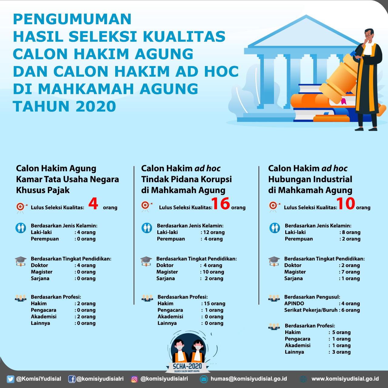 Hasil Seleksi Kualias Calon Hakim Agung dan Calon Hakim ad hoc di Mahkamah Agung Tahun 2020