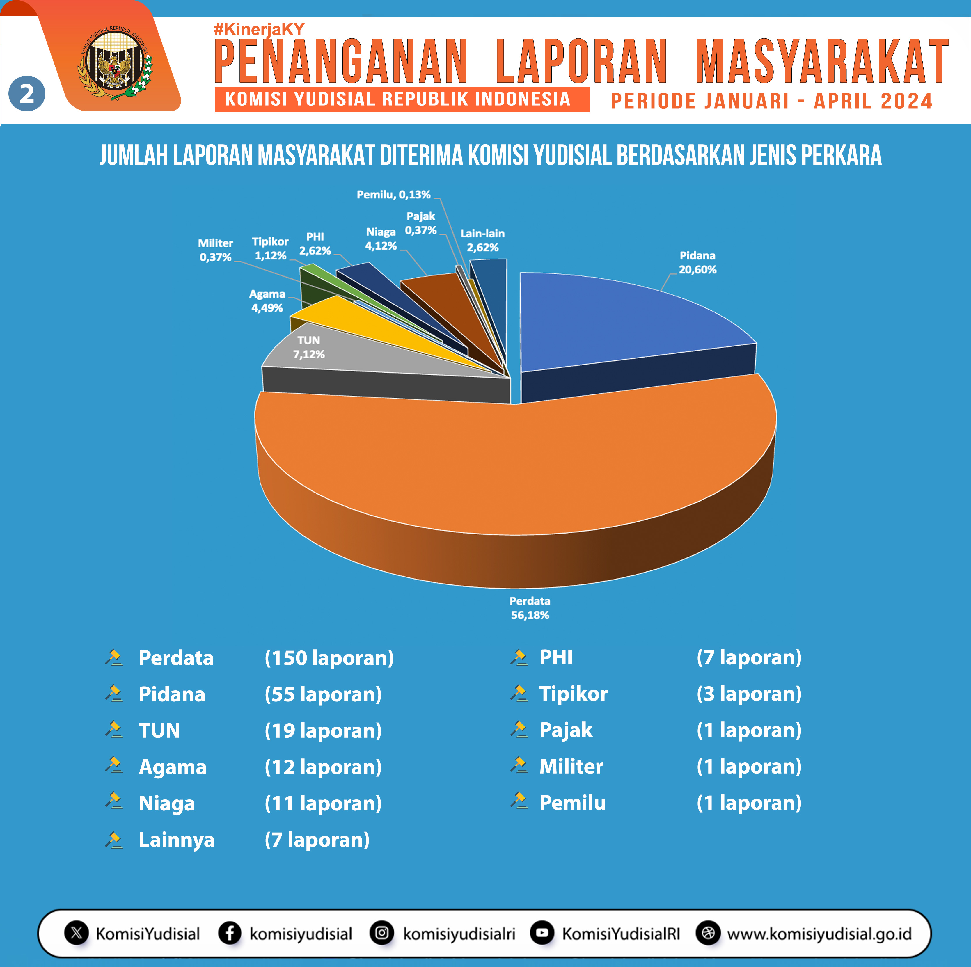 Jumlah laporan yang diterima Komisi Yudisial berdasarkan jenis perkara Januari-April 2024