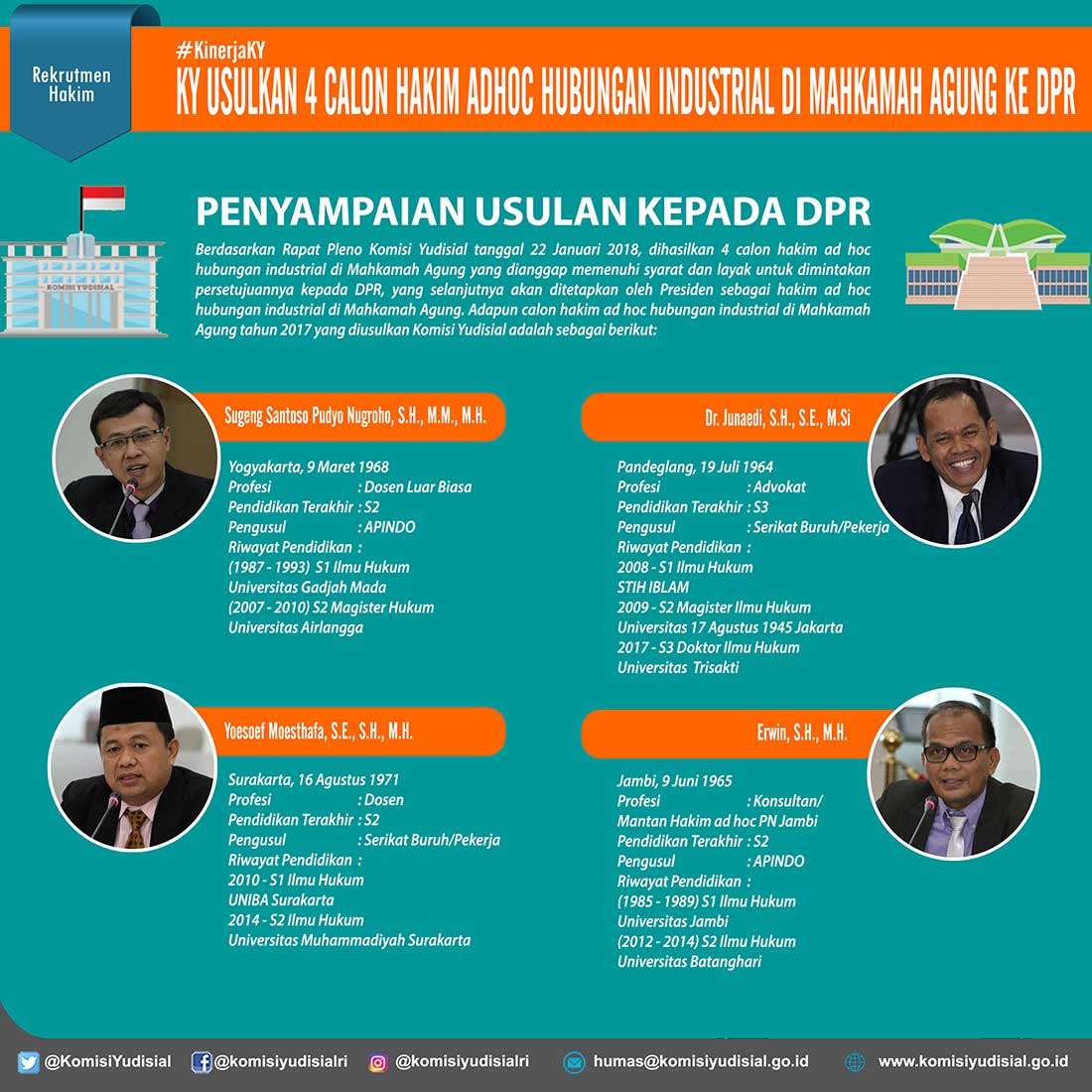 KY Usulkan 4 Calon Hakim Ad Hoc Hubungan Industrial di Mahkamah Agung ke DPR