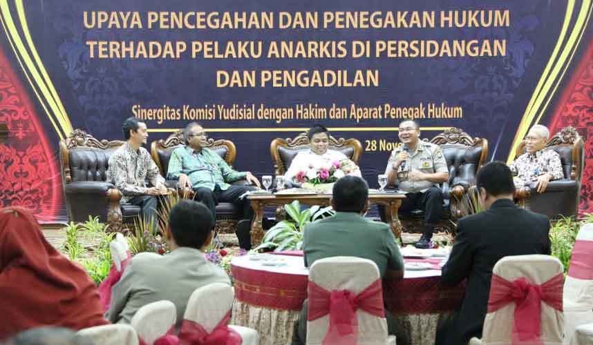 Diskusi “Upaya Pencegahan dan Penegakan Hukum terhadap Pelaku Anarkis di Persidangan dan Pengadilan†di Auditorium KY, Jakarta, Kamis (28/11).