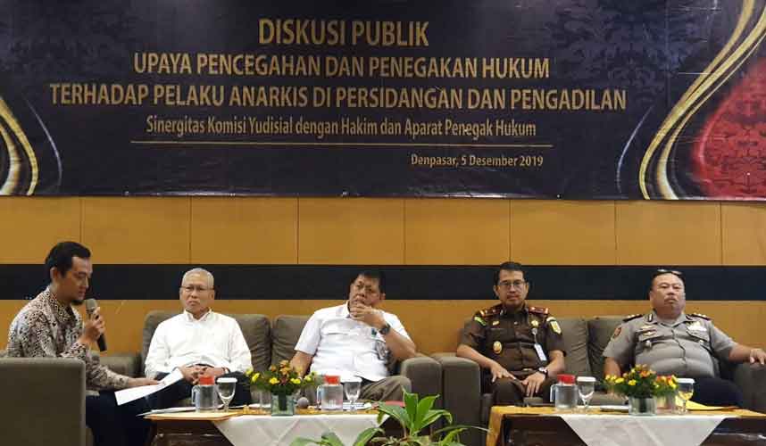 Komisi Yudisial (KY) dalam rangka Sinergitas Komisi Yudisial dengan Hakim dan Aparat Penegak Hukum, menyelenggarakan kegiatan Diskusi Publik dengan tema “Upaya Pencegahan dan Penegakan Hukum Terhadap Pelaku Anarkis di Persidangan†di Hotel Aston, Denpasar, Bali, Kamis (5/12).