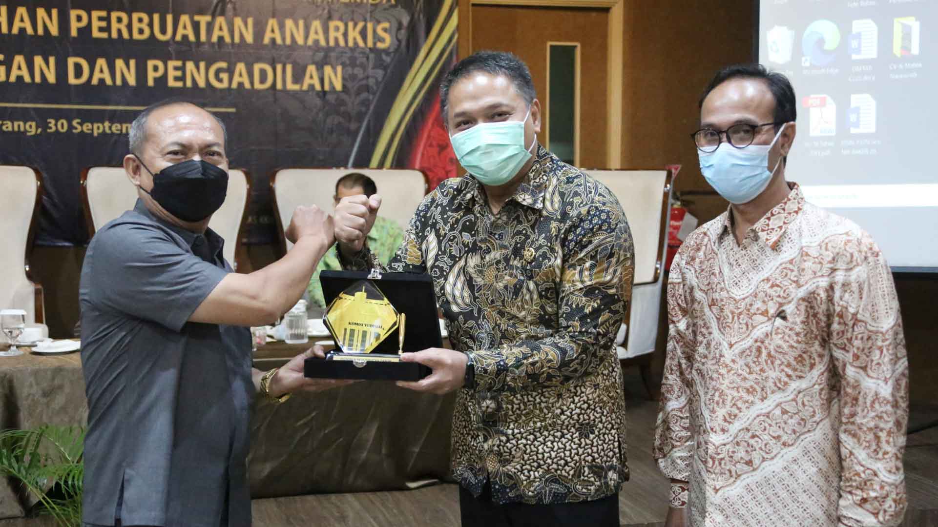 Ketua Dewan Kehormatan Peradi Semarang Dwi Saputra saat acara Diskusi dengan aparat penegak hukum dalam Upaya Pencegahan Perbuatan Anarkis di Persidangan dan Pengadilan, Kamis (30/9) di Semarang.