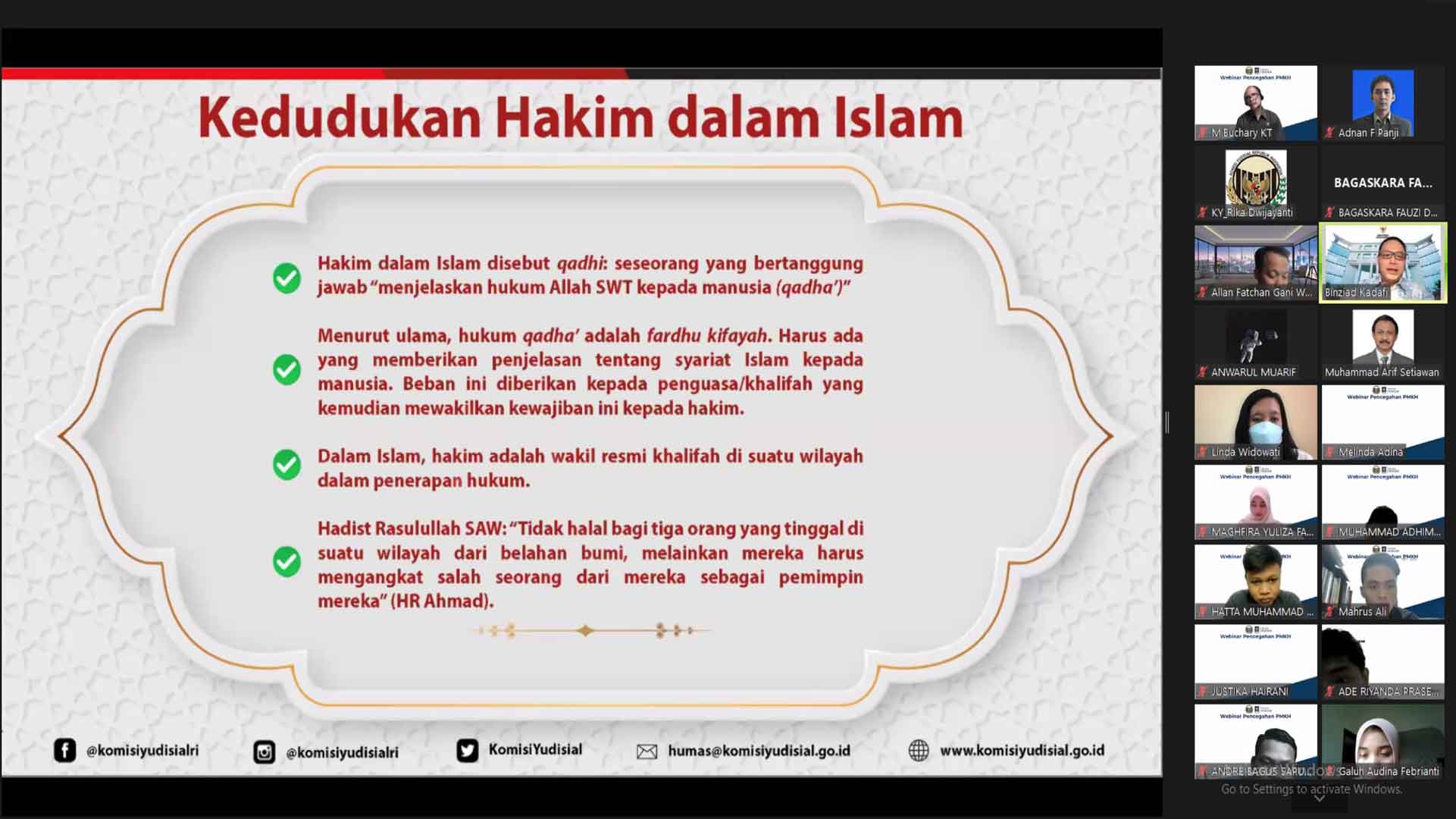 Ketua Bidang Sumber Daya Manusia, Advokasi, Hukum, Penelitian dan Pengembangan Komisi Yudisial (KY) Binziad Kadafi mengatakan hal tersebut saat menjadi narasumber dalam Webinar Perbuatan Merendahkan Kehormatan dan Keluhuran Martabat Hakim (PMKH) yang diselenggarakan oleh Fakultas Hukum Universitas Islam Indonesia (FH UII), Senin, (22/11). Hadir sebagai pembicara lainnya adalah Ketua PN Dumai M. Buchary Tampubolon, JPU pada Kejari Surakarta Dyah Ayu Sekar Pertiwi, dan dosen FH UII M. Arif Setiawan.
