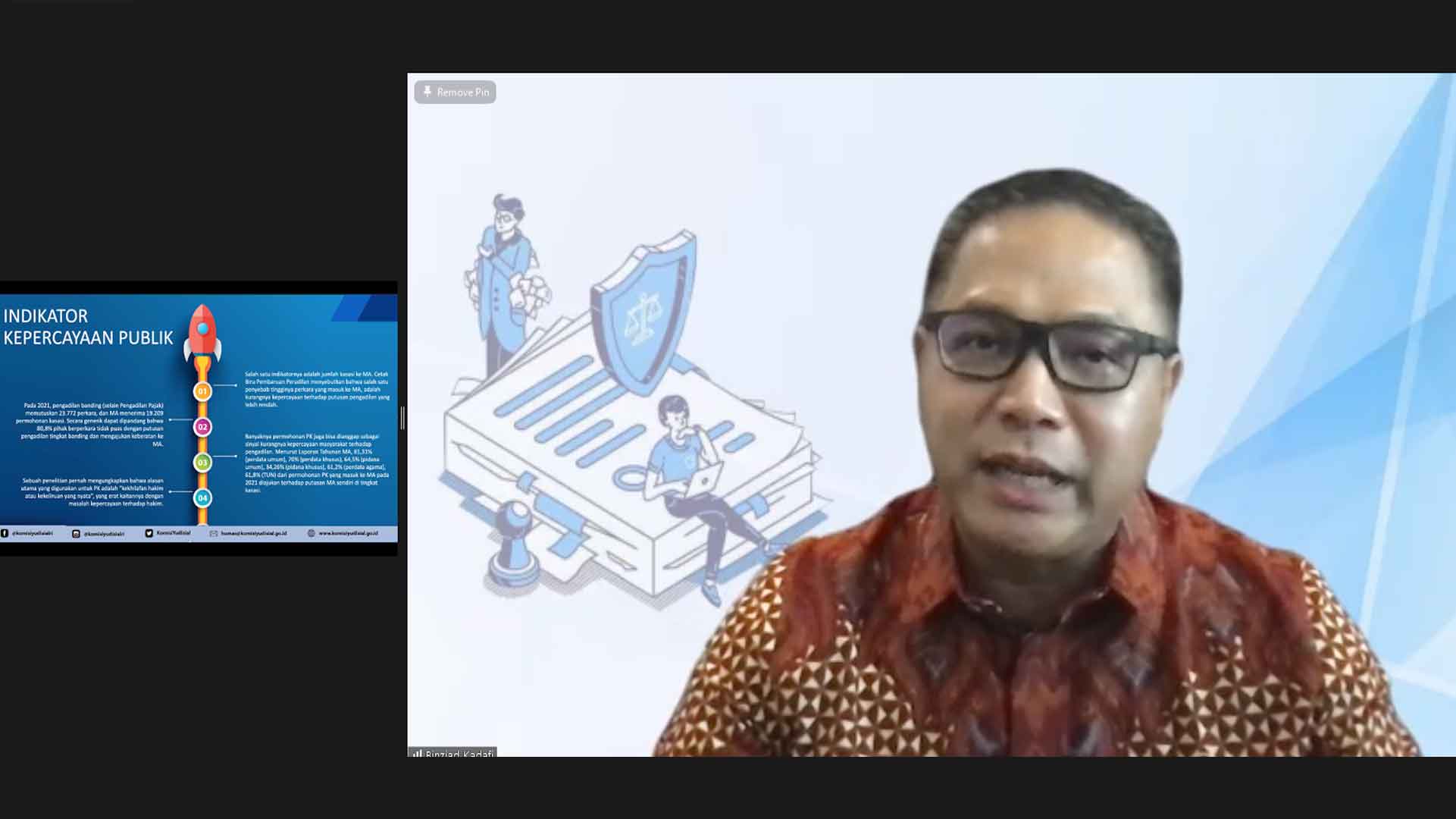 Jakarta (Komisi Yudisial) – Anggota Komisi Yudisial (KY) Binziad Kadafi menjadi salah satu narasumber dalam Sarasehan Internasional Pembaru Peradilan dengan tema “Meningkatkan Kepercayaan Publik Melalui Penguatan Integritas Peradilan”. Sarasehan dilaksanakan oleh Transparency Intenational Indonesia bekerja sama dengan Hukum Online, yang didukung oleh Australia Indonesia Partnership for Justice 2 dan European Union. Sarasehan secara virtual pada Selasa (31/05) ini diikuti oleh puluhan peserta yang terdiri dari perwakilan pemerintahan, akademisi hukum, praktisi hukum, media, dan NGO atau LSM.
