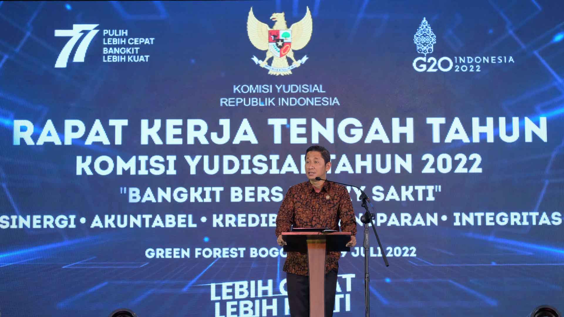 Bogor (Komisi Yudisial) - Komisi Yudisial (KY) menyelenggarakan Rapat Kerja Tengah Tahun (RKTT) Tahun 2022 sebagai forum evaluasi pelaksanaan program kerja KY yang telah dilakukan pada semester pertama, Rabu (27/7) di Bogor, Jawa Barat. RKTT dihadiri oleh pimpinan dan anggota KY beserta pegawai pada kantor pusat dan kantor penghubung KY.