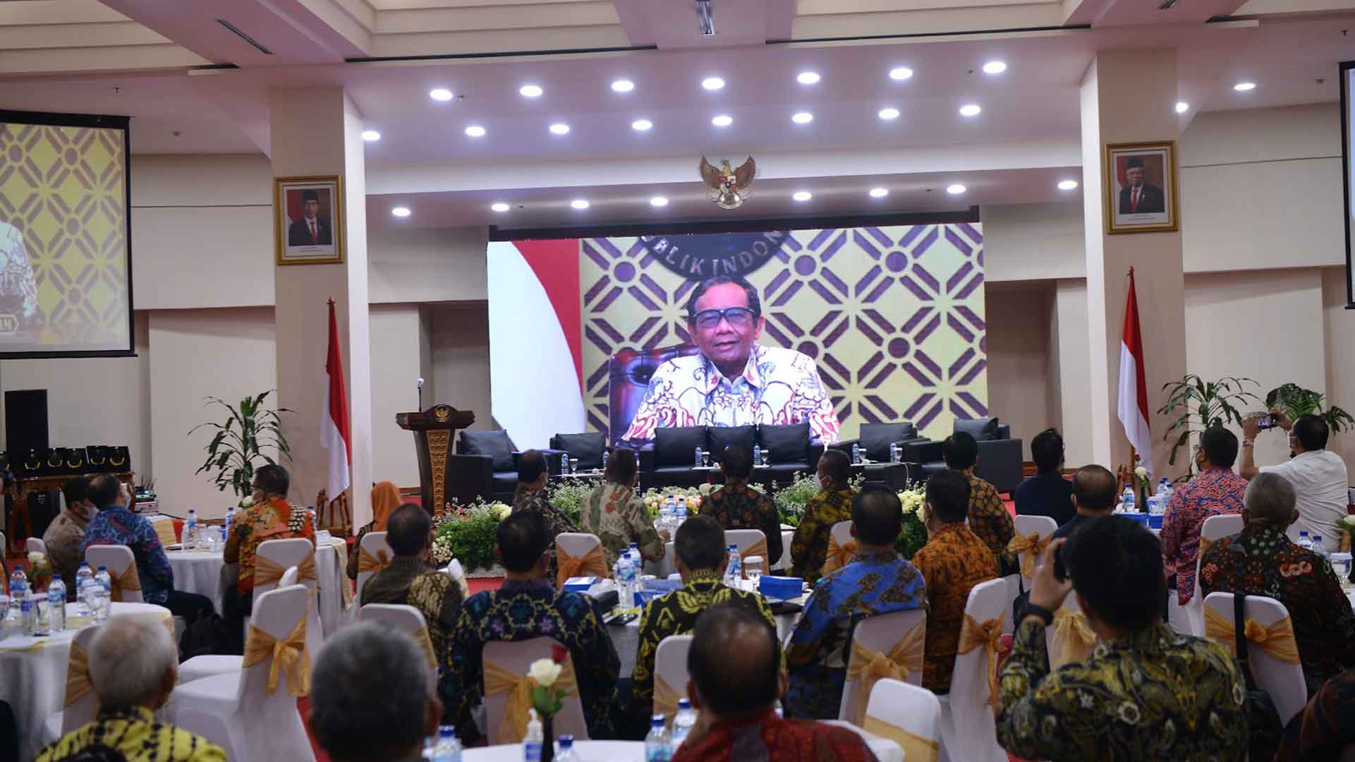Menteri Koordinator Bidang Politik, Hukum dan Keamanan Indonesia Mahfud MD saat memberikan keynote speech dalam Seminar Nasional yang bertajuk “Penguatan Peran Komisi Yudisial Dalam Menjaga dan Menegakkan Kehormatan, Keluhuran Martabat serta Perilaku Hakimâ€, Rabu (24/8) di Auditorium KY, Jakarta.