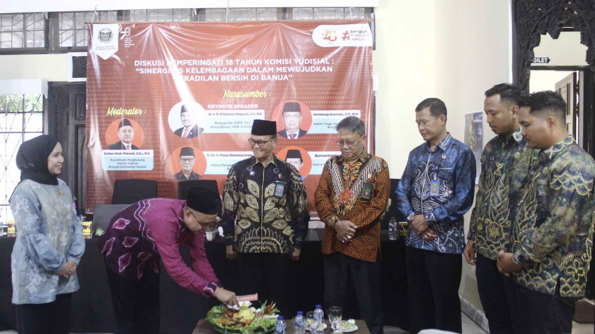 Diskusi “Sinergitas Kelembagaan dalam Mewujudkan Peradilan Bersih di Banua†yang diselenggarakan dalam rangkaian HUT ke-18 KY, Jumat (11/8) di Kantor Penghubung KY Kalimantan Selatan, Banjarmasin.