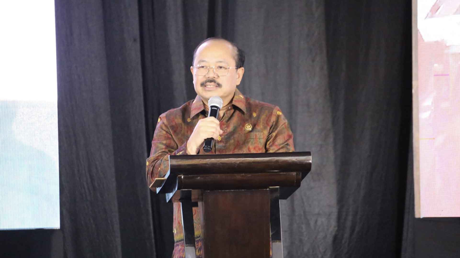 Ketua KY Amzulian Rifai saat memberikan arahan kepada seluruh pejabat struktural dan pegawai KY dalam rapat kerja 2024 bertema 'Transformasi KY menjadi Lembaga yang Akuntabel dan Teguh Menjaga serta Menegakkan KEPPH', Senin (19/2/2024) Bandung, Jawa Barat.
