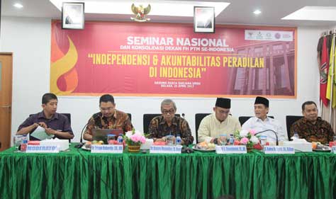 Seminar Nasional Independensi dan Akuntabilitas Peradilan di Indonesia dan Konsolidasi Dekan Fakultas Hukum Perguruan Tinggi Muhammadiyah (FH PTM) se-Indonesia, Selasa (25/4) di Aula Pascasarjana Universitas Muhammadiyah Sumatera Utara (UMSU), Medan.
