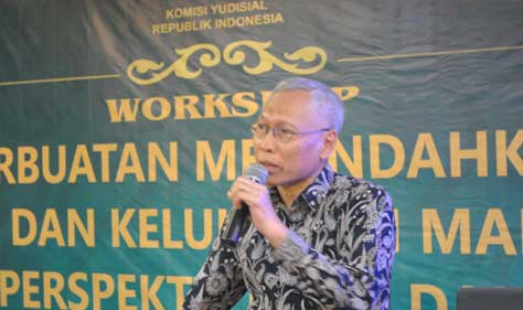 Ketua Bidang SDM, Advokasi, Hukum, Penelitian dan Pengembangan KY Sumartoyo saat memberikan keynote speech dalam workshop Perbuatan Merendahkan Kehormatan dan Keluhuran Martabat Hakim dalam Perspektif Etika dan Hukum, Rabu-Kamis (19-20/07/17) di Palembang