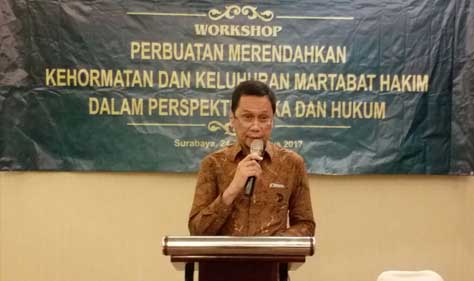 Surabaya (Komisi Yudisial) - Dalam upaya membangun kesadaran seluruh stakeholder untuk menjaga kehormatan dan keluhuran martabat hakim, Komisi Yudisial (KY) melanjutkan Workshop Perbuatan Merendahkan Kehormatan dan Keluhuran Martabat Hakim dalam Perspektif Etika dan Hukum. Di hari kedua ini, KY mengajak perwakilan pemerintah, masyarakat, media dan akademisi berdiskusi dalam rangka membangun peradilan bersih dan menjaga marwah hakim.