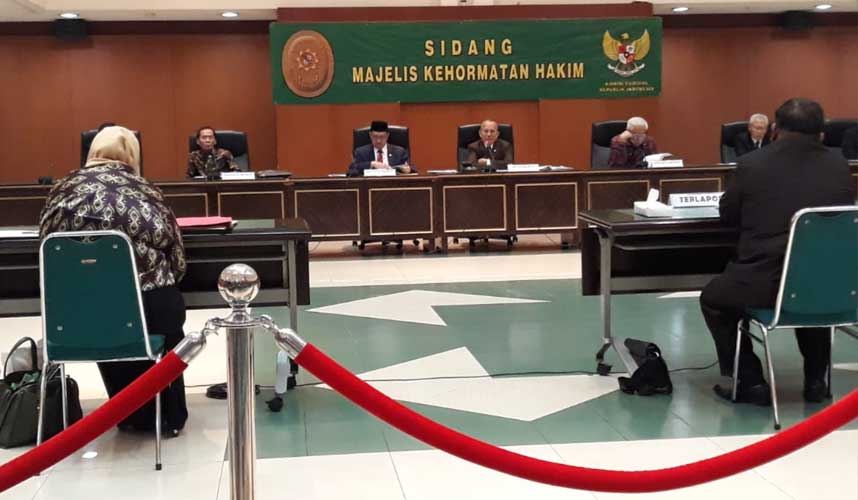 Susunan sidang Majelis MKH terdiri dari Maradaman Harahap, Aidul Fitriciada Azhari, Joko Sasmito, dan Sumartoyo dari KY. Sementara dari MA yaitu hakim Agung Hamdi, Panji Widagdo dan Gazalba Saleh. (KY/Adnan/Festy)