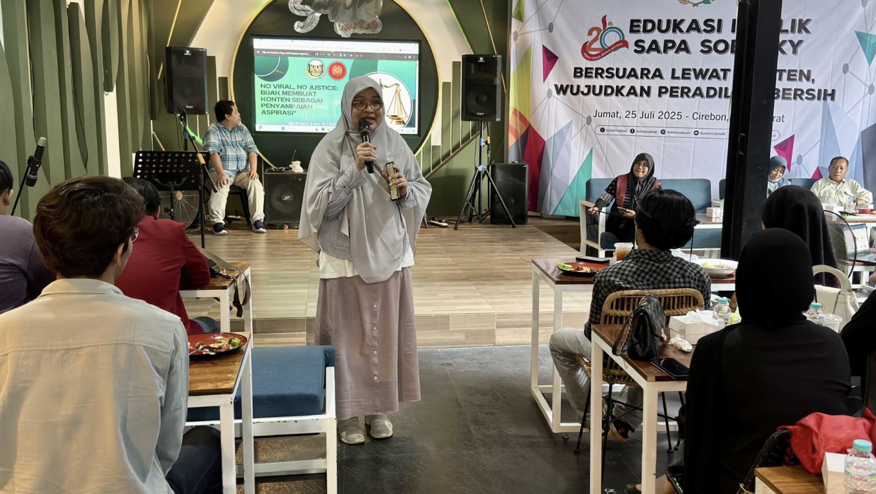 Cirebon (Komisi Yudisial) - Komisi Yudisial (KY) menggelar Edukasi Publik "Dua Dekade Menjaga dan Menegakkan Integritas Hakim: Bersuara Lewat Konten, Wujudkan Peradilan Bersih”, Jumat (25/7/2025) di Cirebon, Jawa Barat. Kegiatan yang digelar menyemarakkan HUT ke-20 tahun KY ini dihadiri puluhan perwakilan mahasiswa dari berbagai universitas dan Sobat KY di Cirebon. ...