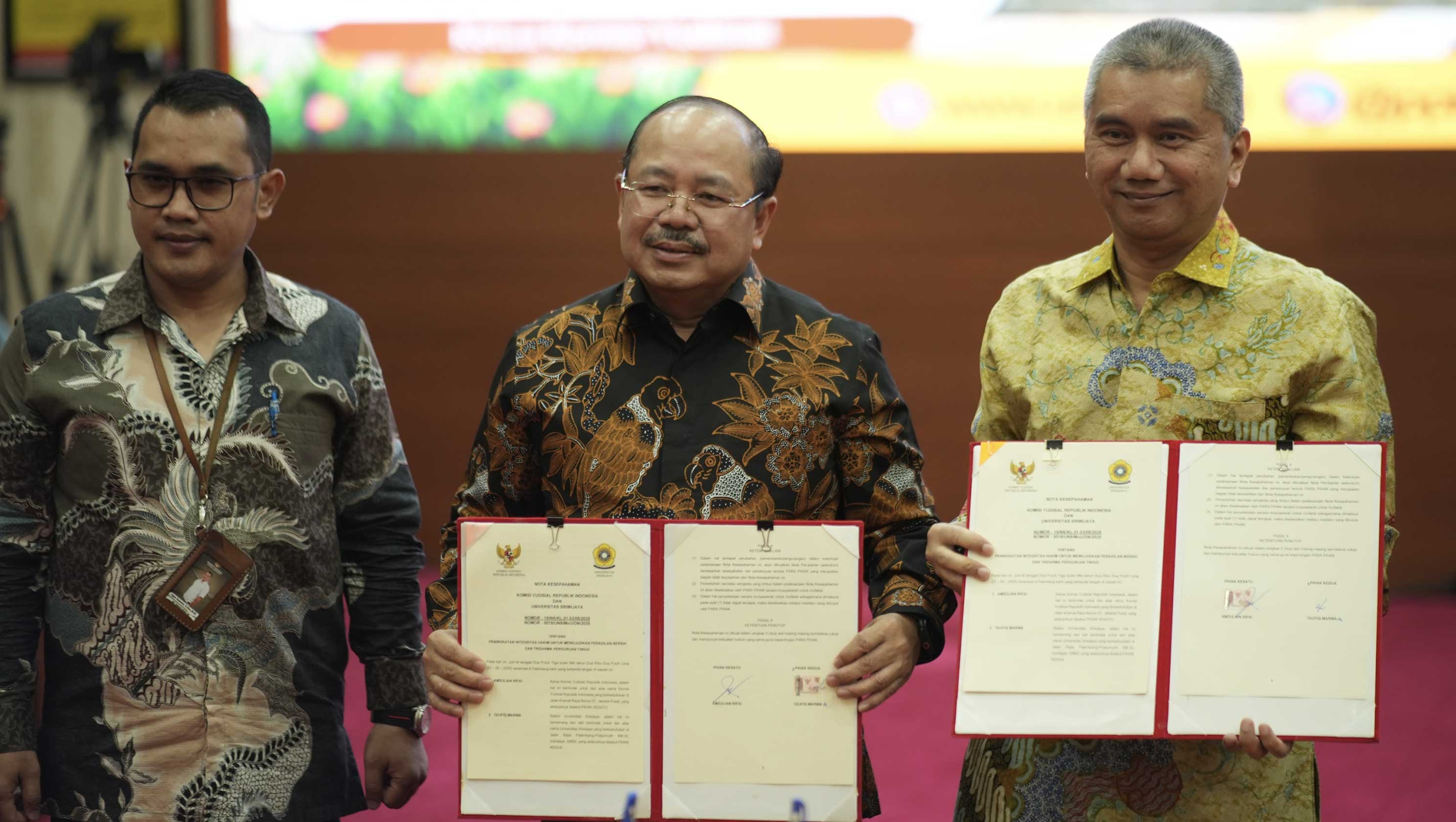 Indralaya (Komisi Yudisial) - Komisi Yudisial (KY) dan Universitas Sriwijaya (Unsri) melakukan pembaruan nota kesepahaman atau memorandum of understanding (MoU) dan perjanjian kerja sama (PKS), Jumat (23/05/2025) di Ruang Rapat Lantai 2 Rektorat Unsri, Kampus Indralaya, Kabupaten Ogan Ilir, Sumatera Selatan.  Nota kesepahaman yang ditandatangani oleh Ketua KY Amzulian Rifai...