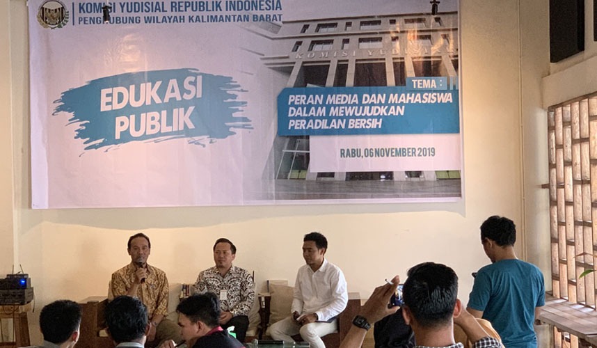 Pontianak (Komisi Yudisial) - Penghubung Komisi Yudisial (KY) Wilayah Kalimantan Barat (Kalbar) selenggarakan Edukasi Publik “Peran Mahasiswa dan Media dalam Mewujudkan Peradilan Bersih” di Canopy Cafe Pontianak, Rabu (6/11).   Hadir sebagai pembicara Kepala Bidang Data dan Layanan Informasi Untung Maha Gunadi, Koordinator Penghubung KY Kalbar Budi Darmawan dan sebagai...