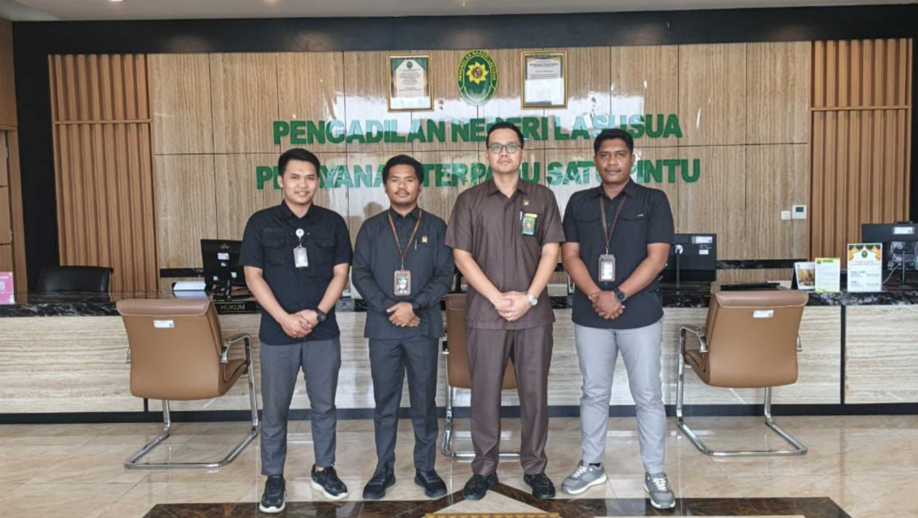 Lasusua (Komisi Yudisial) - Penghubung Komisi Yudisial (KY) Wilayah Sulawesi Tenggara (Sultra) beraudiensi dengan  Pengadilan Negeri (PN) Lasusua untuk berkoordinasi terkait tugas pemantauan persidangan, Rabu (9/10/2025). Pengadilan Negeri Lasusua, terletak di Kabupaten Kolaka Utara yang merupakan daerah yang berbatasan langsung dengan Provinsi Sulawesi Selatan. Jaraknya sekira 298 km dari Kota...