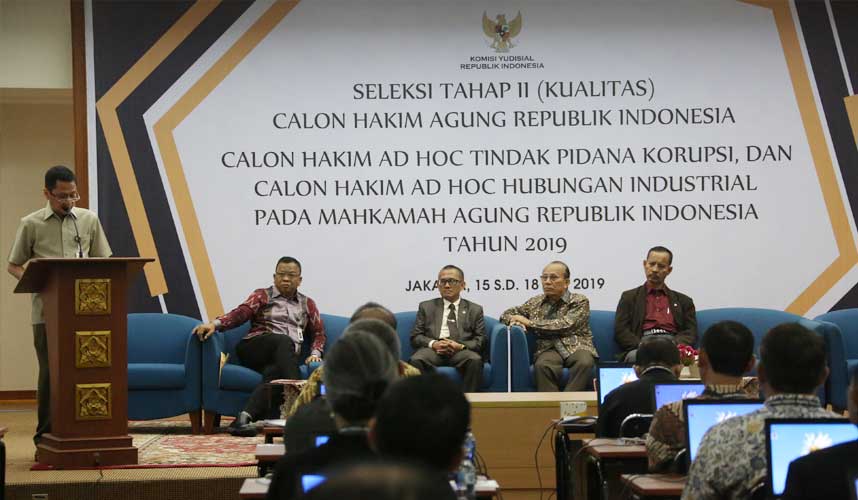 Jakarta (Komisi Yudisial) -  Komisi Yudisial (KY) menggelar seleksi tahap II, yaitu Kualitas bagi calon hakim agung (CHA) dan calon hakim ad hoc di Mahkamah Agung (MA), Senin-Kamis, 15-18 Juli 2019 di Auditorium KY, Jakarta.   Untuk seleksi kualitas CHA dilaksanakan pada Senin-Selasa, 15-16 Juli 2019. Sementara seleksi kualitas calon...