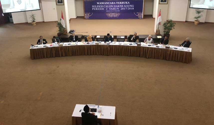 Jakarta (Komisi Yudisial) - Calon hakim agung (CHA) ketiga yang menjalani wawancara terbuka CHA Periode II Tahun 2017-2018 adalah Hakim Tinggi Agama Medan Imron Rosyadi dari Kamar Agama.    Imron ditanya pendapatnya soal persoalan penegakan hukum di Indonesia. Menurut Imron, kepercayaan masyarakat kepada pengadilan cenderung menurun. Banyak masyarakat yang sudah...