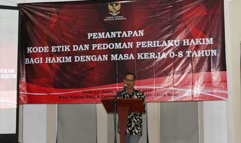 Bogor (Komisi Yudisial) - Kode Etik dan Pedoman Perilaku Hakim (KEPPH) seharusnya menjadi acuan bagi para hakim. Sehingga harus diinternaliasi dalam kehidupan sehari-hari.    Demikian disampaikan Ketua Bidang Pencegahan dan Peningkatan Kapasitas Hakim Joko Sasmito pada Pelatihan Pemantapan Kode Etik dan Pedoman Perilaku Hakim untuk hakim masa kerja 0-8 tahun...
