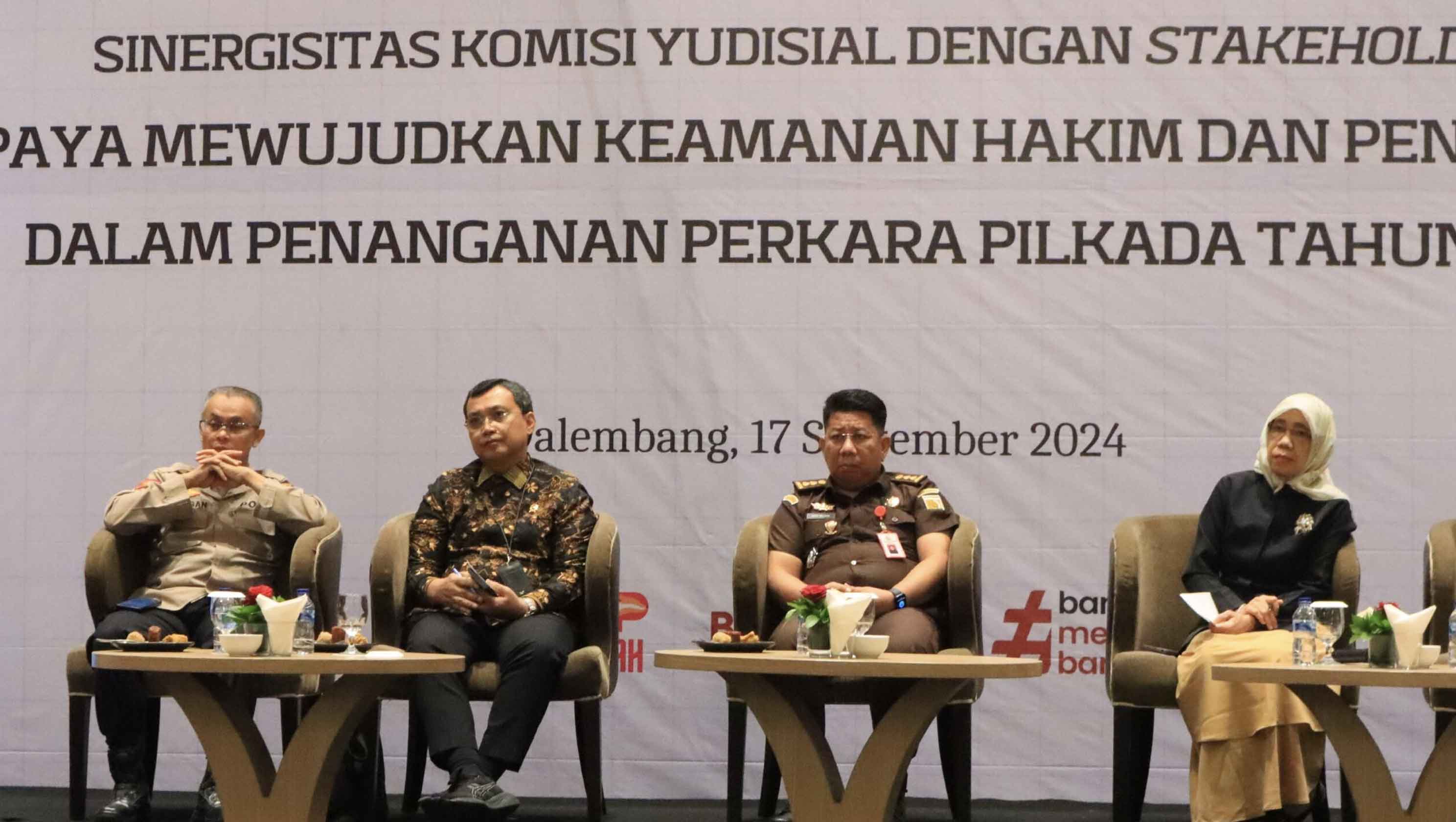 Palembang (Komisi Yudisial) - Komisi Yudisial (KY) mendorong adanya jaminan keamanan pengadilan yang menangani perkara Pemilihan Kepala Daerah (Pilkada) 2024. Ketua KY Amzulian Rifai mengatakan bahwa pengamanan hakim di Indonesia tergolong longgar. Terlebih ada kultur di masyarakat yang belum sepenuhnya menghormati pengadilan. "Pembahasan soal keamanan pengadilan pada perkara Pilkada ini...