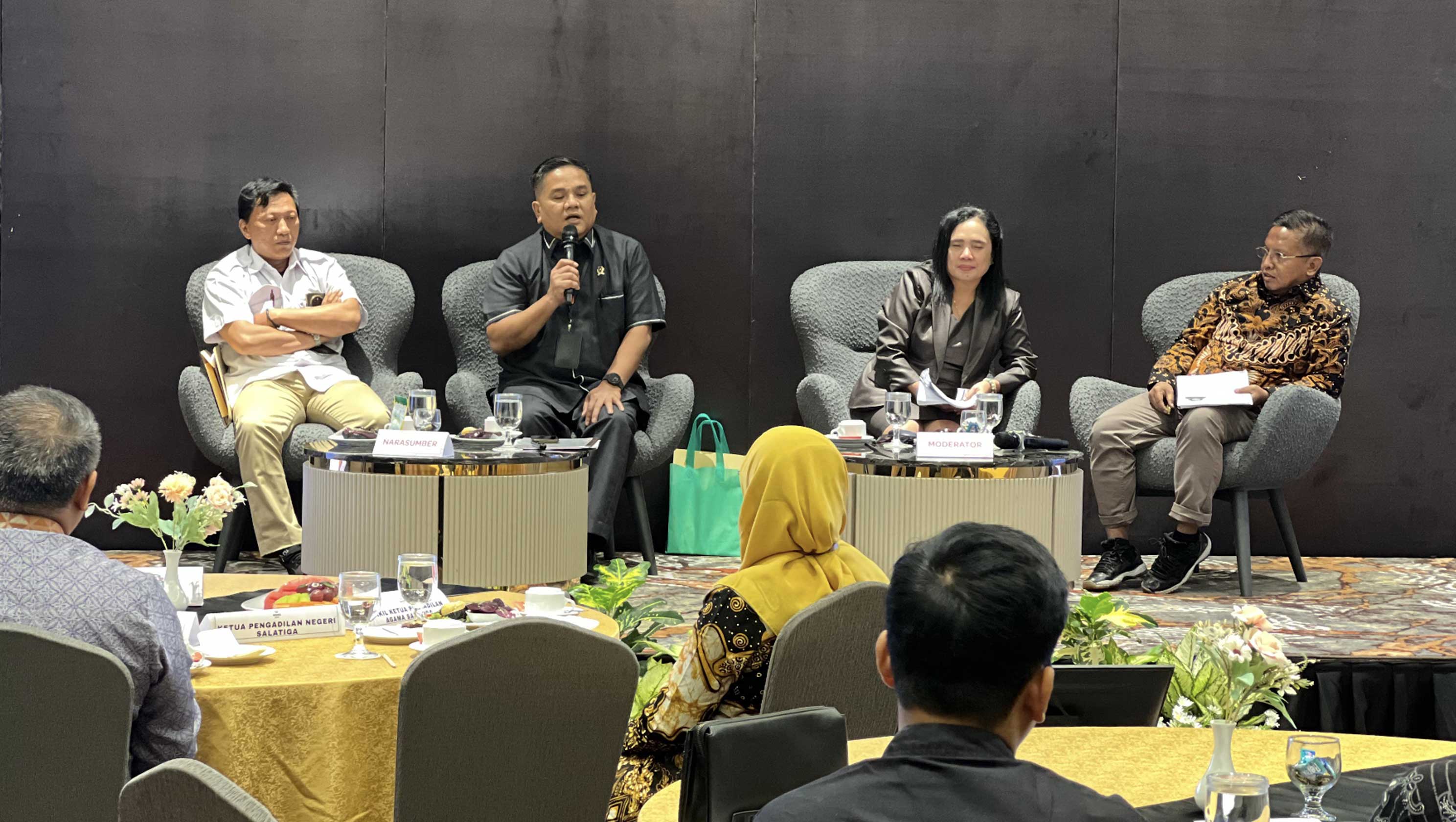 Salatiga (Komisi Yudisial) - Komisi Yudisial (KY) menggelar diskusi sinergisitas KY dengan stakeholders dari unsur hakim, jaksa, advokat, akademisi, pemerintah daerah, dan pers. Hal ini merupakan komitmen bersama untuk memperkuat sinergi antara KY dengan pemangku kepentingan dalam rangka "Mewujudkan Kemandirian dan Kewibawaan Hakim serta Pengadilan” di Salatiga, Kamis (18/09/2025). Ketua Pengadilan...