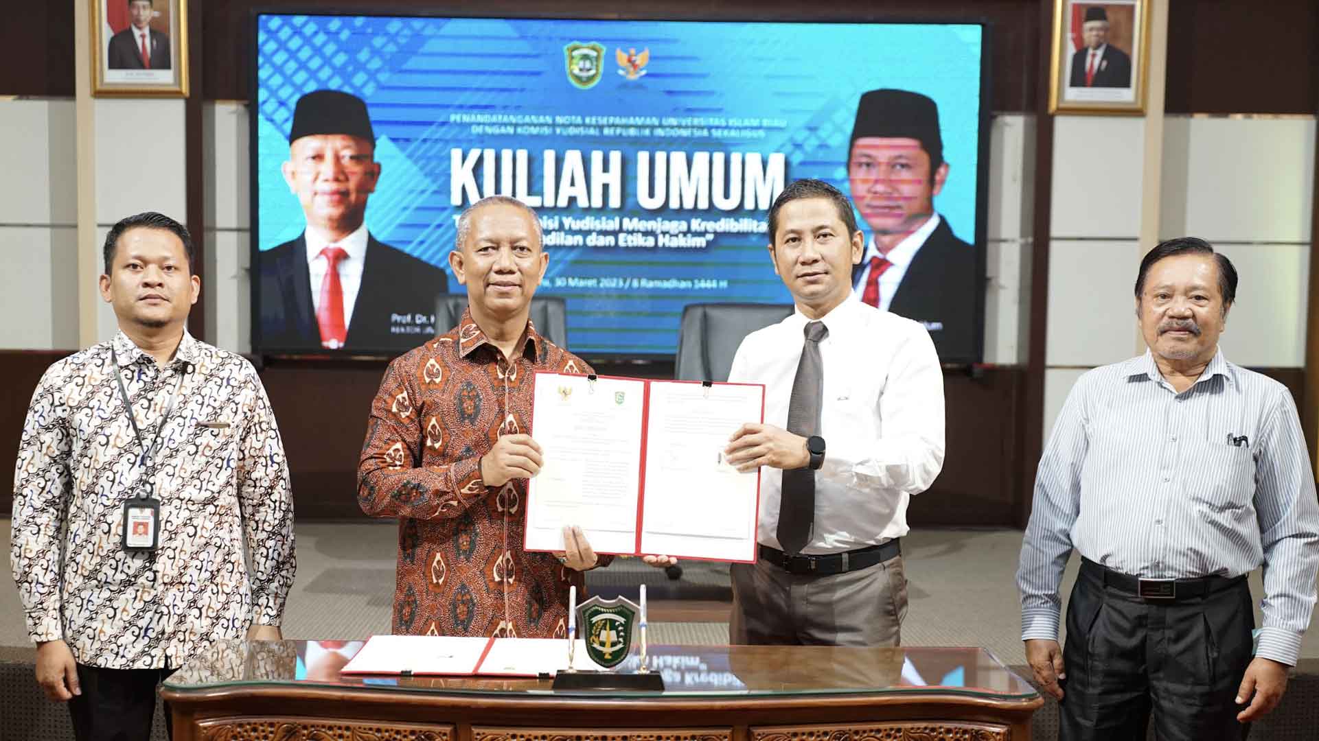 Pekanbaru (Komisi Yudisial) - Ketua Komisi Yudisial (KY) Mukti Fajar Nur Dewata dan Rektor Universitas Islam Riau Syafrinaldi sepakat melakukan penandatanganan Nota Kesepahaman dalam rangka mewujudkan peradilan  bersih, di Auditorium Lt.4 Gedung Rektorat Universitas Islam Riau (UIR), Kamis (30/03). Adapun ruang lingkup nota kesepahaman ini meliputi pertemuan ilmiah, kuliah umum,...