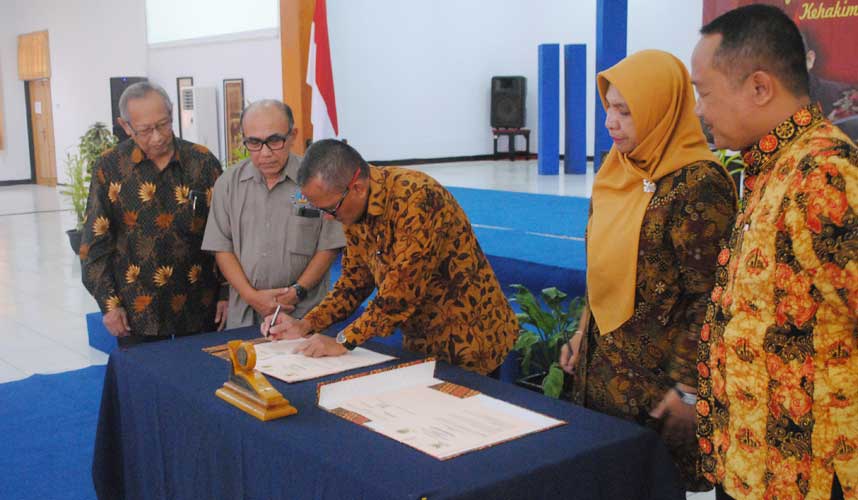 Kuningan (Komisi Yudisial) – Komisi Yudisial (KY) melakukan penandatanganan nota kesepahaman atau memorandum of understanding (MoU) dengan Universitas Kuningan. Penandatanganan dilakukan oleh Ketua KY Jaja Ahmad Jayus dengan Wakil Rektor Satu Anna Fitri Hindriana, Jumat (26/4) di Aula Universitas Kuningan, Jawa Barat.   Dalam sambutan sebelum penandatangan, Jaja menyampaikan agar...