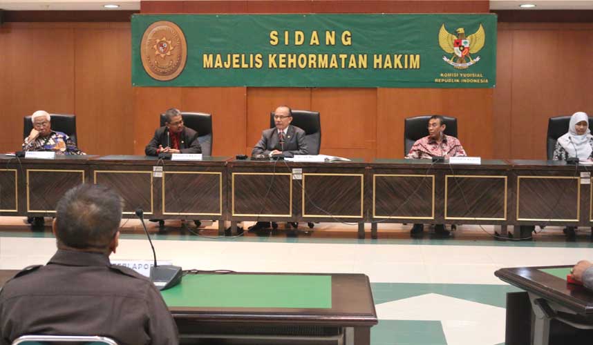 Jakarta (Komisi Yudisial) – Komisi Yudisial (KY) dan Mahkamah Agung (MA) melalui Majelis Kehormatan Hakim (MKH) memberhentikan dengan hormat hakim yustisia di Pengadilan Tinggi (PT) Gorontalo berinisial JWL, Rabu (10/10) di Gedung Wirjono Prodjodikoro, MA, Jakarta.   “Menjatuhkan sanksi berat  kepada terlapor JWL berupa pemberhentian tetap dengan hak pensiun karena...