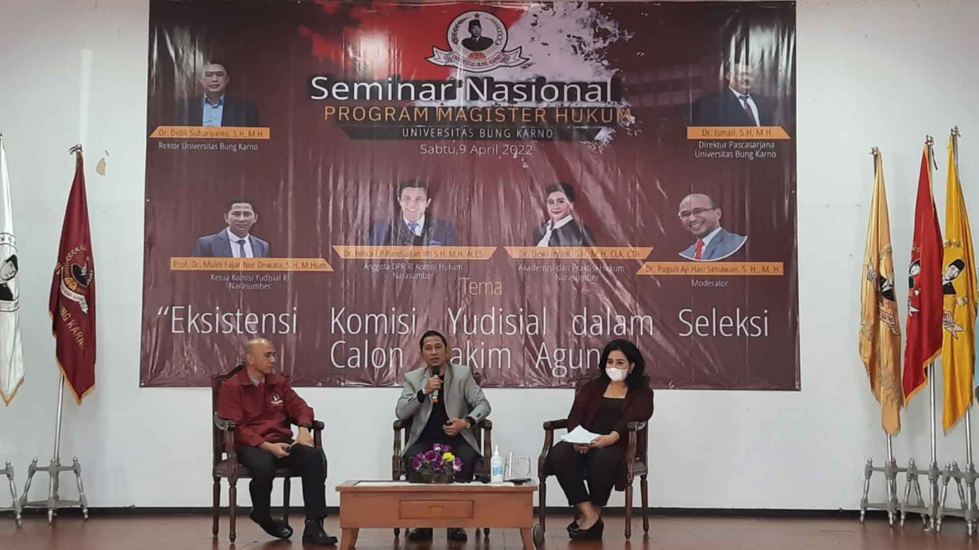 Jakarta (Komisi Yudisial) – Ketua Komisi Yudisial (KY) Mukti Fajar Nur Dewata menjadi salah satu narasumber dalam Seminar Nasional Program Magister Hukum Universitas Bung Karno. Kegiatan yang mengambil tema  “Eksistensi Komisi Yudisial dalam Seleksi Calon Hakim Agung” ini,l dilaksanakan pada Sabtu (9/4), di Aula Ir. Soekarno Universitas Bung Karno, Jakarta....