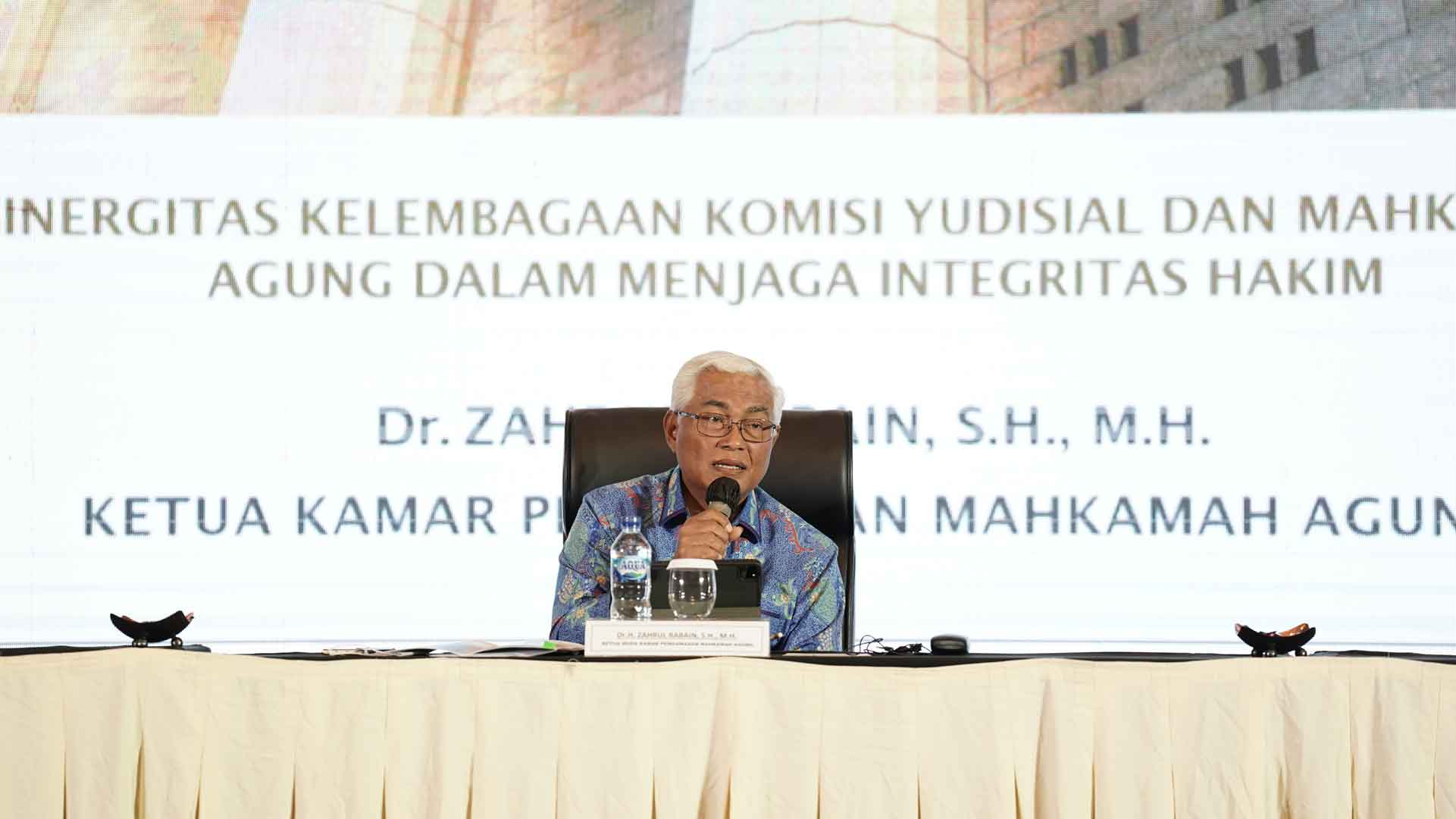Solo (Komisi Yudisial) - Memasuki hari kedua Rapat kerja (Raker) Komisi Yudisial (KY) tahun 2022 menghadirkan empat  narasumber. Pada sesi pertama, hadir Ketua Kamar Pengawasan Mahkamah Agung (MA) Zahrul Rabain yang didampingi Plt. Kepala Badan Pengawas MA Dwiarso Budi. Zahrul membawakan materi dengan tema “Sinergitas Kelembagaan Komisi Yudisial dan Mahkamah...