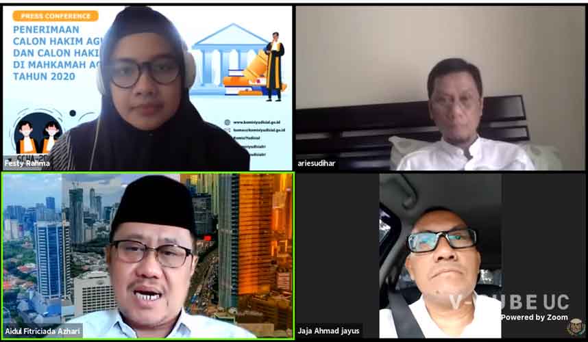 Jakarta (Komisi Yudisial) - Komisi Yudisial (KY) secara resmi membuka penerimaan calon hakim agung (CHA) dan calon hakim ad hoc di Mahkamah Agung (MA) Tahun 2020. Rencana seleksi sempat tertunda akibat pandemi Covid-19. KY pastikan protokol kesehatan diterapkan.   Pernyataan tersebut disampaikan Ketua Bidang Rekrutmen Hakim KY Aidul Fitriciada Azhari...