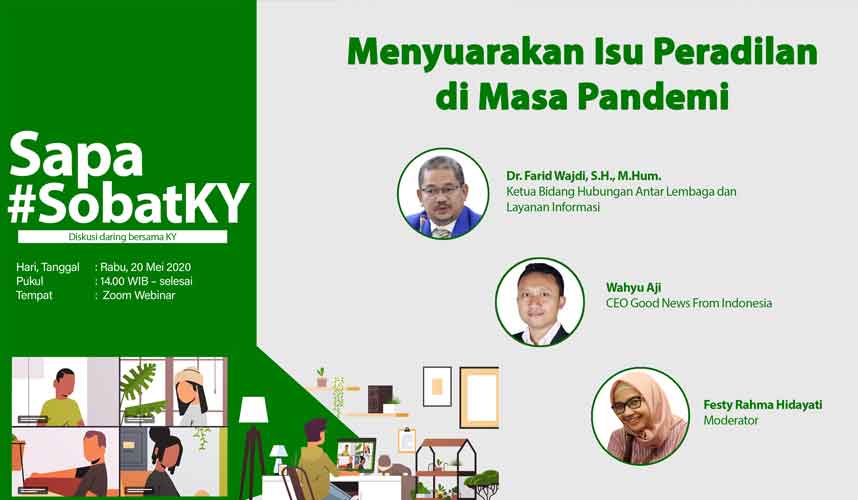 Jakarta (Komisi Yudisial) -  Komisi Yudisial (KY) mengajak Sobat KY untuk aktif menyuarakan peradilan bersih melalui media sosial. Hal ini penting agar tujuan tegaknya hukum dan keadilan tetap dapat terwujud, meski di tengah situasi pandemi Covid-19.   "Peran KY tersebut dapat diketahui masyarakat bila tersampaikan dengan baik melalui medium media...