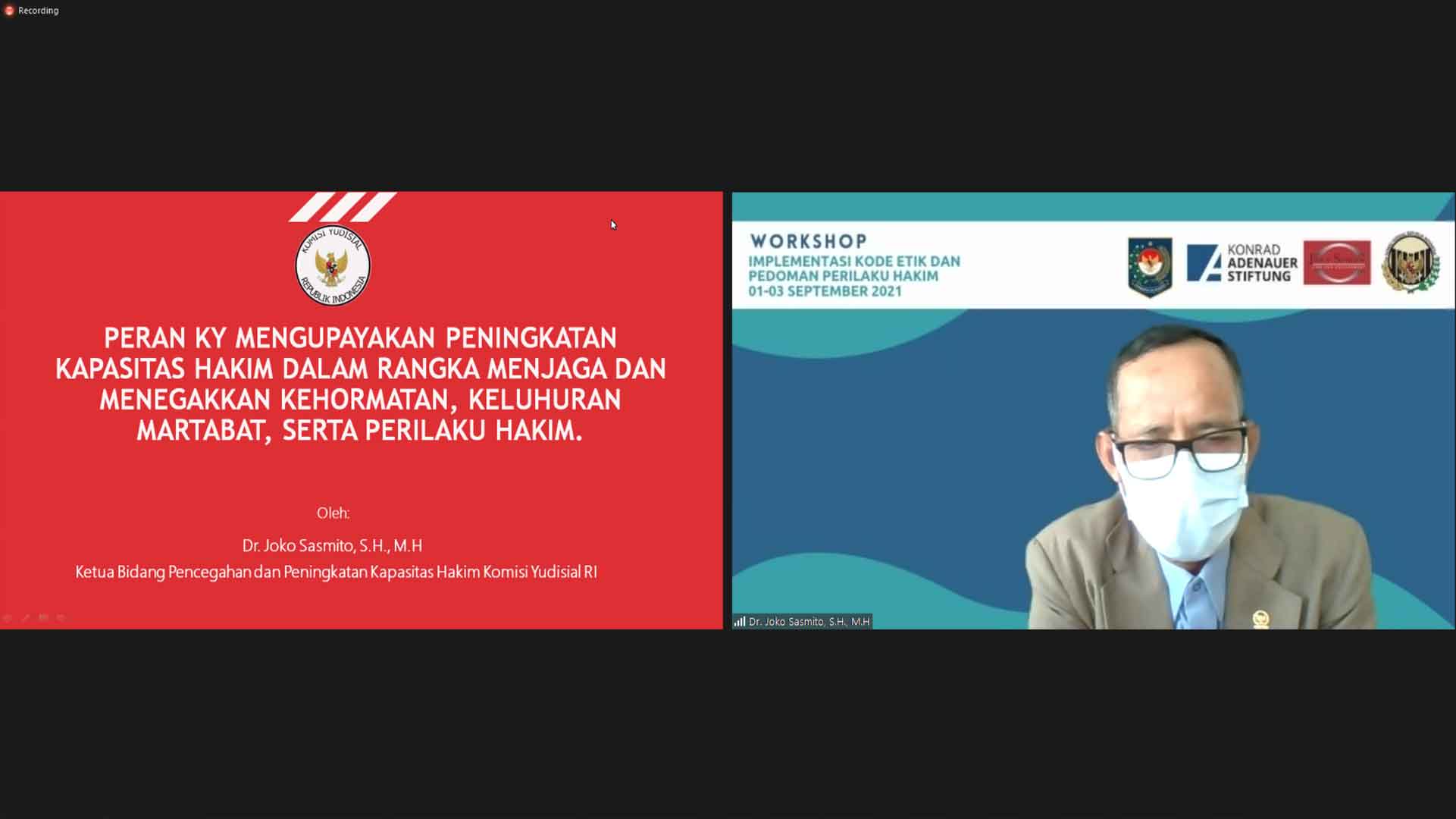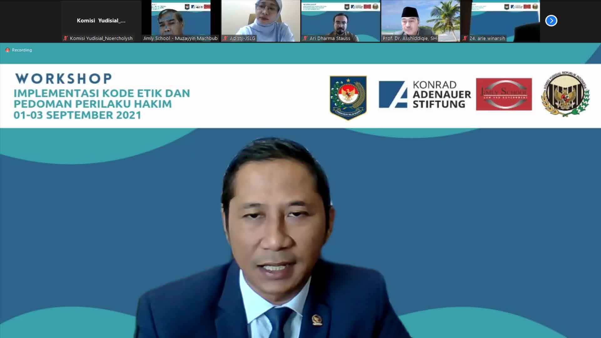 Jakarta (Komisi Yudisial) – Komisi Yudisial (KY) berkerja sama dengan Jimly School Law and Government dan Yayasan Konrad Adenauer Stiftung menyelenggarakan Workshop Kode Etik dan Pedoman Perilaku Hakim (KEPPH). Workshop berlangsung secara daring pada 1-3 September 2021 dengan peserta 30 hakim dari wilayah Pengadilan Tinggi Kupang dan Pengadilan Tinggi Agama...