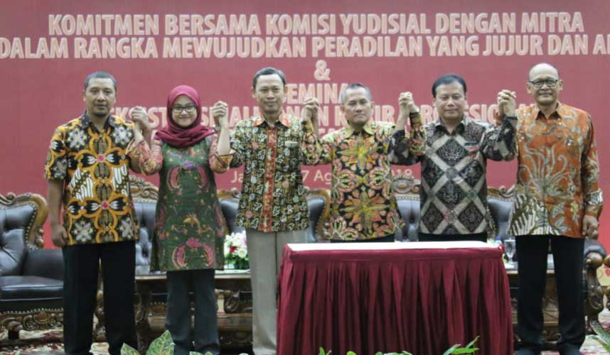 Jakarta (Komisi Yudisial) – Komisi Yudisial (KY) akan pantau sengketa pemilihan umum (Pemilu) 2019. Sebagai langkah awal, KY beserta Komisi Pemilihan Umum (KPU), Badan Pengawas Pemilihan Umum (Bawaslu), dan elemen masyarakat lainnya melakukan penandatanganan komitmen bersama dalam rangka mewujudkan peradilan jujur dan adil.   “Agar tidak terjadi pelanggaran Kode Etik...