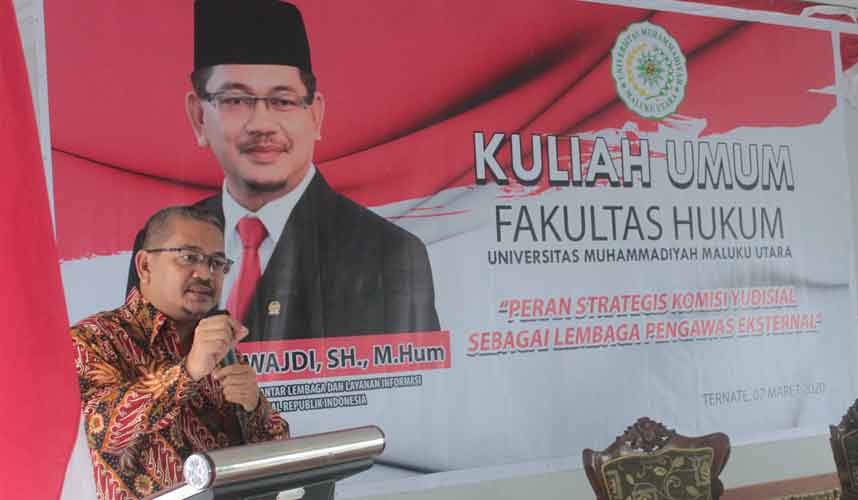 Ternate (Komisi Yudisial) - Sebagai lembaga pengawas eksternal lembaga peradilan, Komisi Yudisial (KY) mempunyai peran strategis dalam mewujudkan peradilan yang bersih dan independen.   Hal tersebut disampaikan Ketua Bidang Hubungan Antar Lembaga KY Farid Wajdi pada Kuliah Umum Fakultas Hukum Universitas Muhammadiyah Maluku Utara (Ummu) “Peran Strategis Komisi Yudisial sebagai...