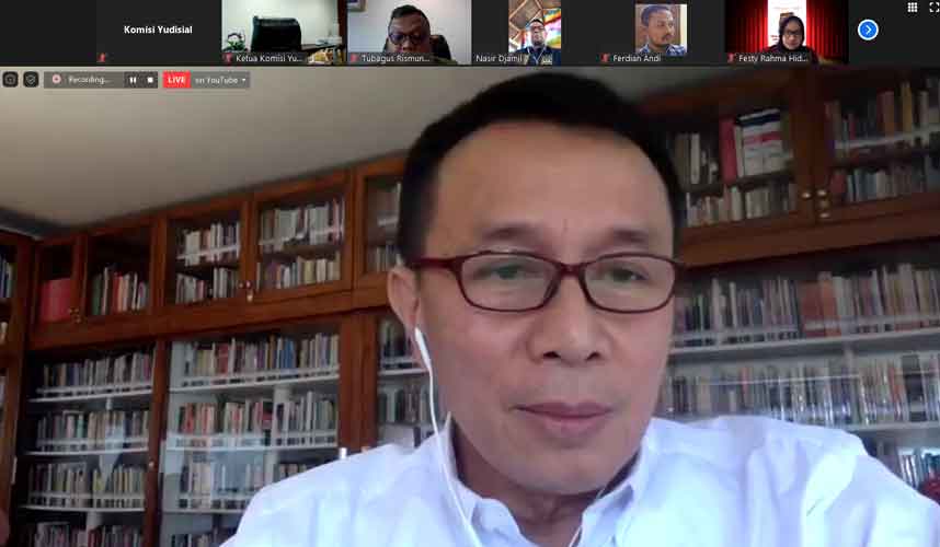 Jakarta (Komisi Yudisial) - Di tengah situasi pandemi Covid-19, Anggota Komisi Yudisial (KY) Farid Wajdi dkk meluncurkan buku terbaru "Pengawasan Hakim dan Penegakan Kode Etik di Komisi Yudisial" secara virtual, Selasa (12/5). Acara tersebut dilanjutkan dengan diskusi webinar dengan menghadirkan narasumber yaitu, Ketua KY Jaja Ahmad Jayus, Anggota DPR M....