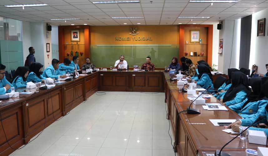 Jakarta (Komisi Yudisial) – Komisi Yudisial (KY) menyambut baik kedatangan puluhan mahasiswa Fakultas Hukum Universitas Muhammadiyah Surakarta (UMS) di Ruang Pers KY, Selasa (9/10).Kunjungan mahasiswa dalam kerangka studi hukum tematik tersebut untuk mengenal lebih jauh peran dan fungsi KY secara langsung.    “Kurang afdol jika tidak berkunjung langsung ke sini...