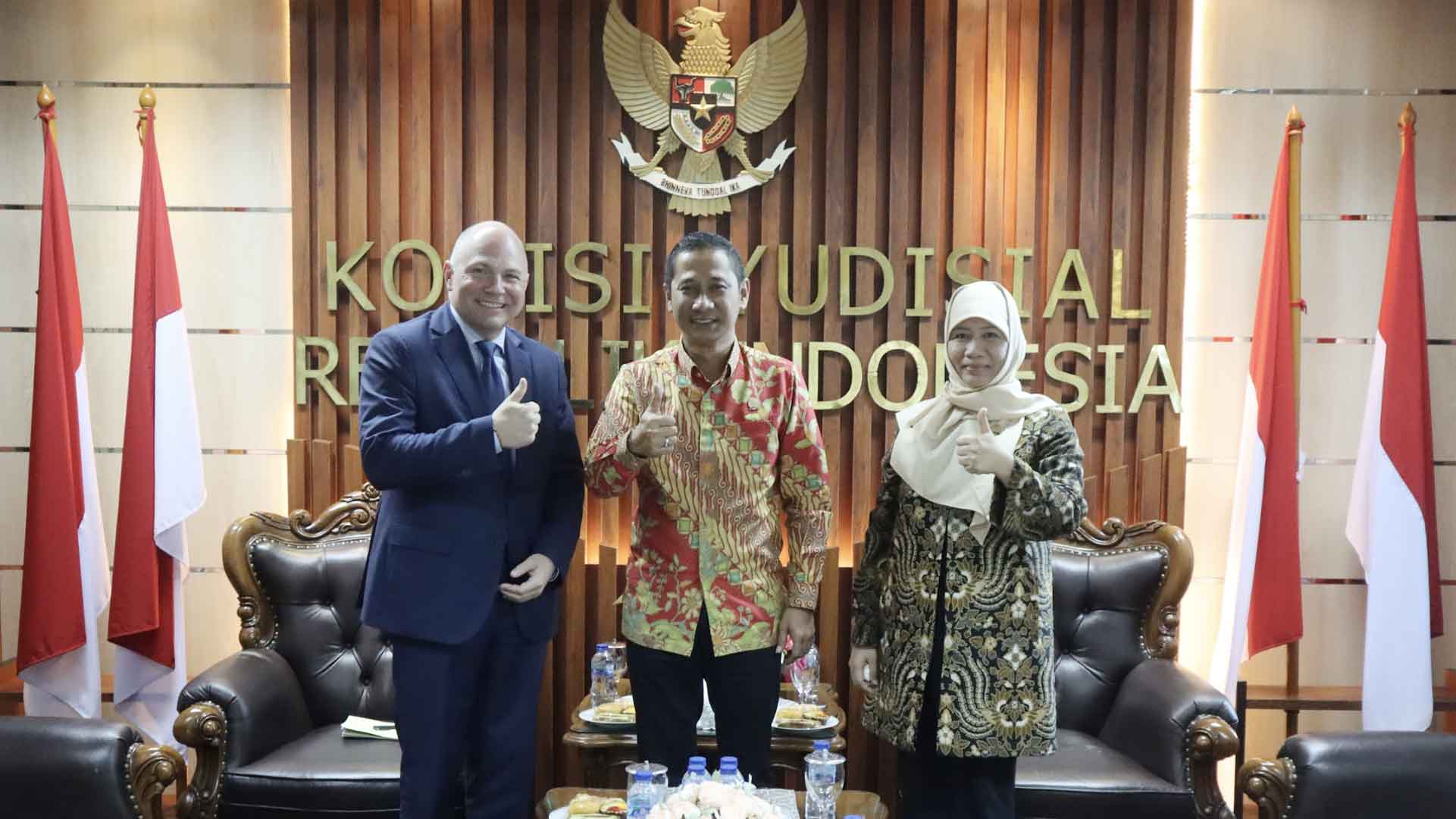 Jakarta (Komisi Yudisial) – Ketua Komisi Yudisial (KY) Mukti Fajar Nur Dewata, didampingi Anggota KY Sukma Violetta, Kepala Biro Rekrutmen, Advokasi, dan Peningkatan Kapasitas Hakim Untung Maha Gunadi, dan Juru Bicara KY Miko Ginting menerima kedatangan Deputy Head of Mission Uni Eropa Stéphane Mechati. Pertemuan pada Senin (06/02) berlangsung di...