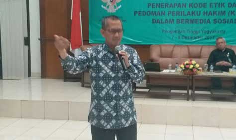 Yogyakarta (Komisi Yudisial) - Bermacam persoalan penegakan hukum saat ini membuat kepercayaan masyarakat kepada pengadilan cenderung menurun. Hakim sebagai salah satu pilar penegakan hukum harus bersih dari Korupsi Kolusi dan Nepotisme (KKN).   "Untuk merawat kepercayaan publik, pengadilan harus bersih dari KKN dengan cara membangun pribadi hakim yang berintegritas, sistem kontrol...