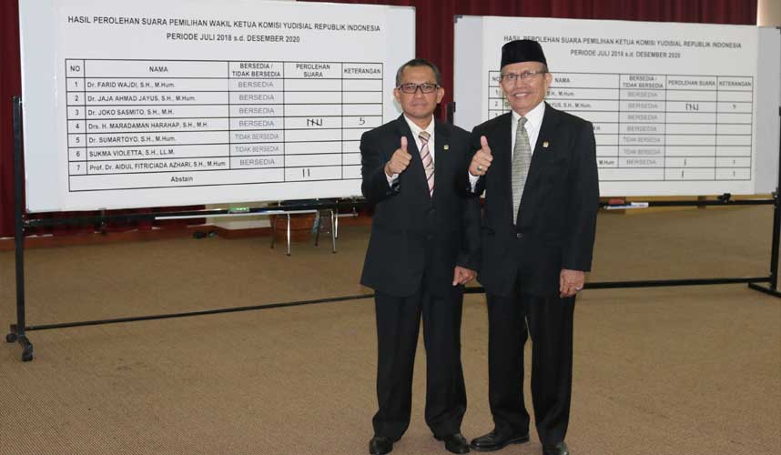 Jakarta (Komisi Yudisial) - Jaja Ahmad Jayus dan Maradaman Harahap terpilih menjadi Ketua dan Wakil Ketua Komisi Yudisial (KY) Periode Juli 2018-Desember 2020. Jaja dan Maradaman berhasil mendapatkan suara terbanyak dalam voting Rapat Pemilihan Pimpinan KY Periode Juli 2018-Desember 2020, Jumat (29/6) di Auditorium KY, Jakarta.    Rapat pemilihan yang...