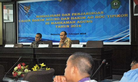 Surabaya (Komisi Yudisial) - Komisi Yudisial (KY) menggelar Sosialisasi dan Penjaringan calon hakim agung (CHA) dan Hakim Ad hoc Tindak Pidana Korupsi (Tipikor) di Mahkamah Agung (MA) di tujuh kota guna menjaring calon-calon berkualitas. KY menjamin proses seleksi ini akan berjalan secara transparan dan independen. KY juga akan berusaha mencari calon...