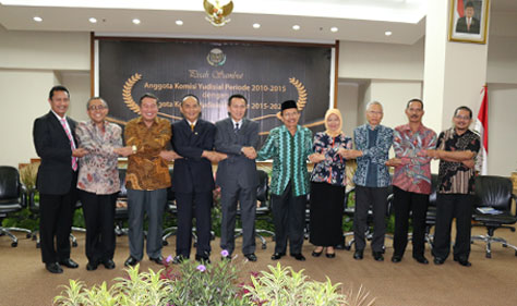 Jakarta (Komisi Yudisial) - Setelah melalui proses seleksi akhirnya terpilih lima Anggota baru KY periode 2015-2020 yakni Farid Wajdi, Joko Sasmito, Maradaman Harahap, Sukma Violetta dan Sumartoyo.   Untuk menyambut Anggota KY yang baru periode 2015-2020 dan melepas Anggota KY yang lama periode 2010-2015 Komisi Yudisial (KY) menyelenggarakan acara pisah...