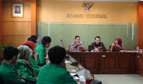 Jakarta (Komisi Yudisial) - Ratusan mahasiswa yang didampingi Dosen Fakultas Hukum Universitas Janabadra, Yogyakarta berkunjung ke kantor Komisi Yudisial (KY) yang beralamat di Jalan Kramat Raya 57, Jakarta Pusat. Kunjungan dalam rangka Praktik Kerja Lapangan diterima oleh Tenaga Ahli bidang Anotasi Imran dan Kepala Bidang data dan Layanan Informasi Titik Ariyati....